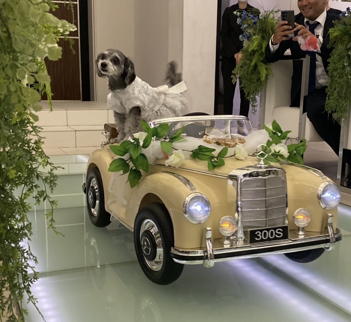 結婚式では愛犬フランにリングドックをしてもらいました🐶上手くいくか不安でしたが、しっぽを振りながら嬉しそうに登場してくれました︎𖤐´-