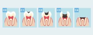 神経にまで達すると、ズキズキと激しい痛みが出ます。この段階では「神経を取る治療(根管治療)」が必要です。